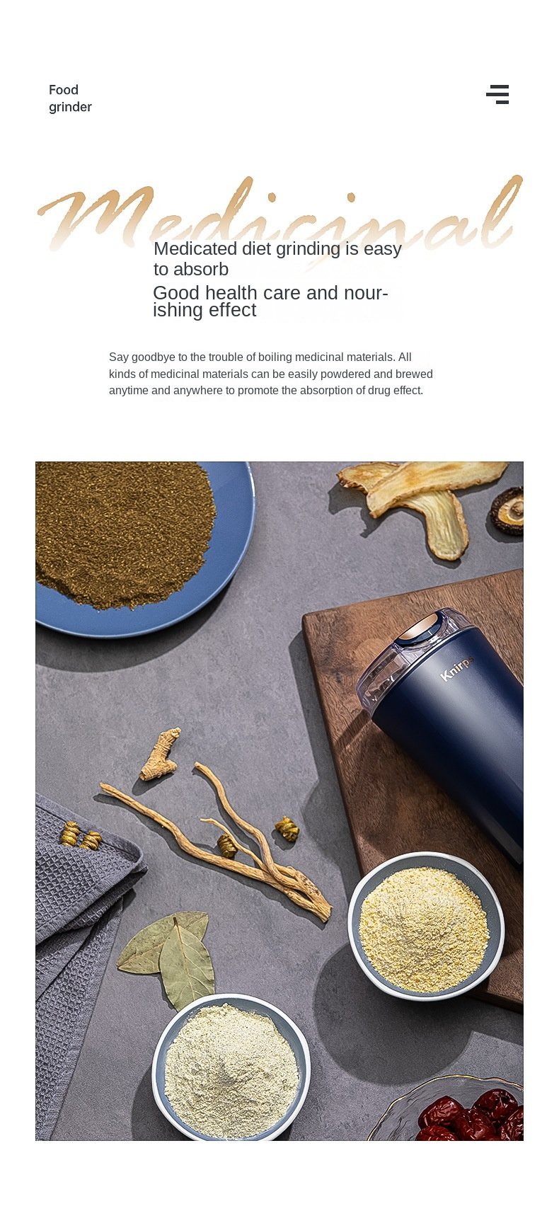 [Good Helper for Cooking]: Small size,big energy,Quick grinding with one click.crushing seasoning, supplement,meal powder,grinding herbs,grinding nutrients,grinding ingredients,coffee beans, nuts,herbs,grains,peppers,seeds,one key grinding,fresh and good life.Save you a lot of time to do other more meaningful things and enjoy your life easily.